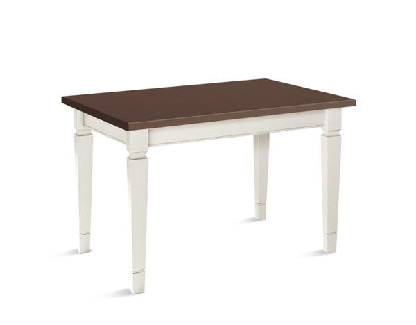 61 cm-high wall units and a striking design delineate this kitchen, where the operating stations are clearly distinguished (sink, builtin oven and hob) on two different sides of the corner composition. The bridge handle, in satin finish Steel finish, blends in seamlessly with this “new classic” mood.