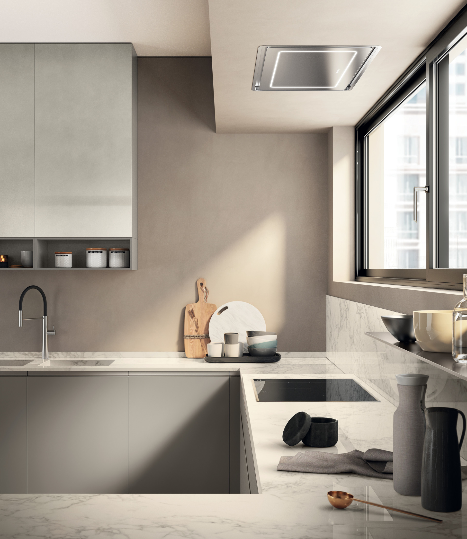 此外,该系列还提供各种开放式元素、金属薄片吊柜和储物柜。
