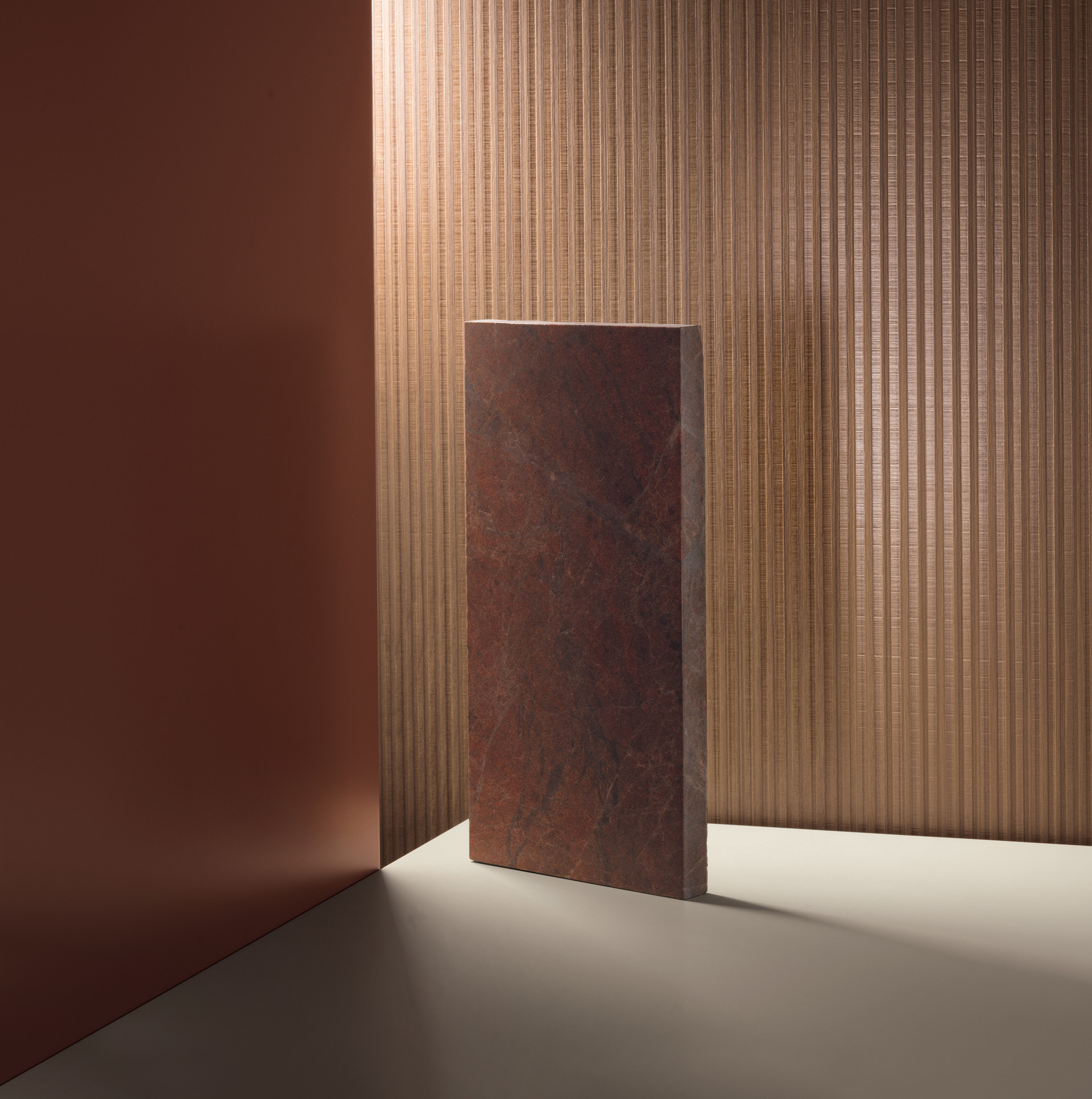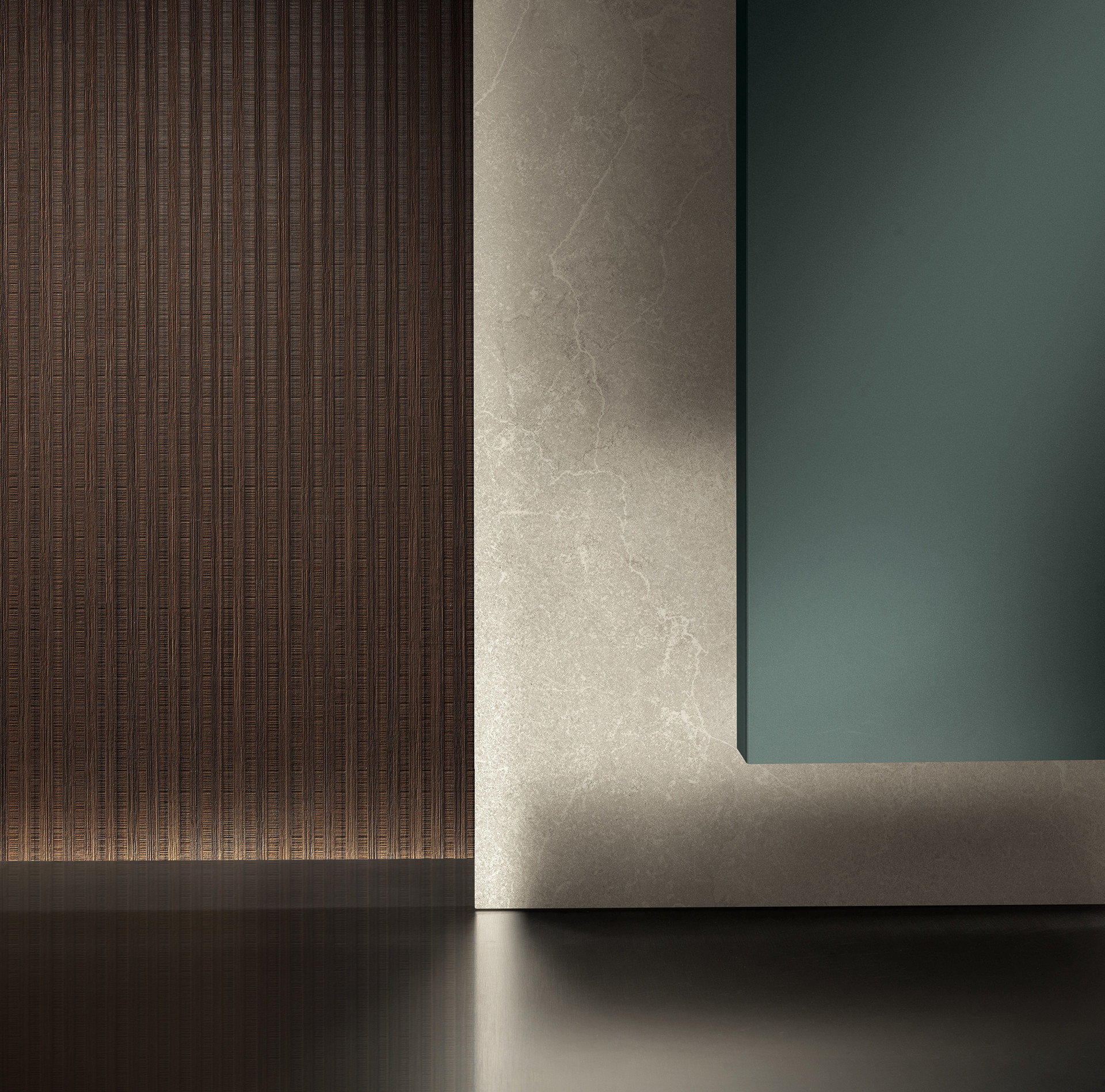 线性组合配有鸽子灰哑光烤漆和铁锈色哑光烤漆门板。