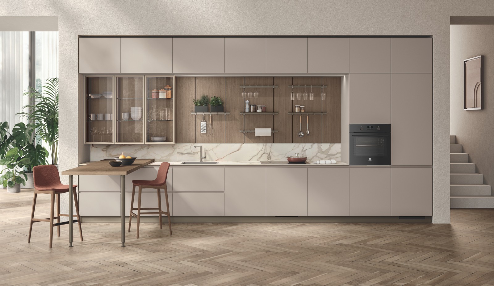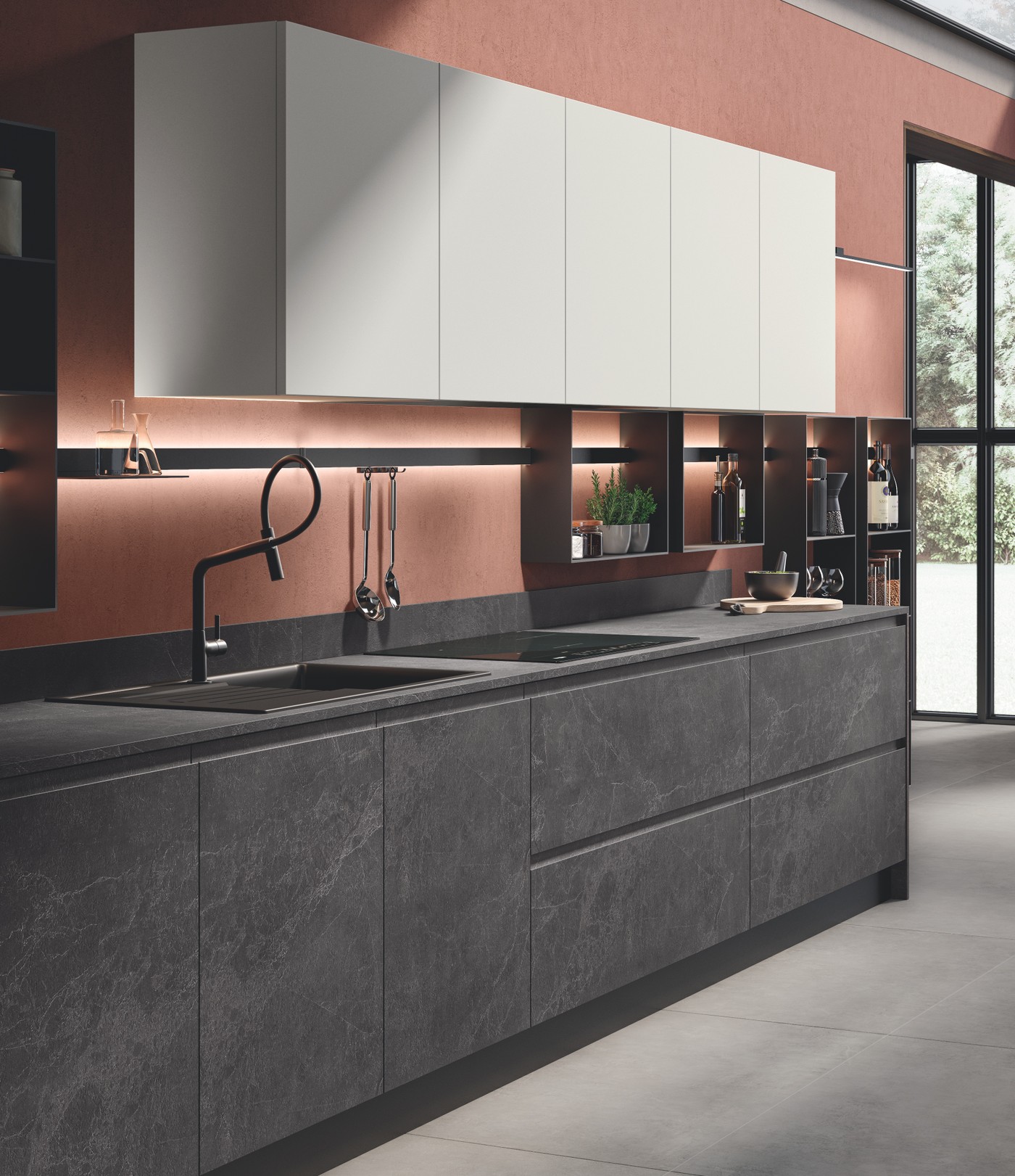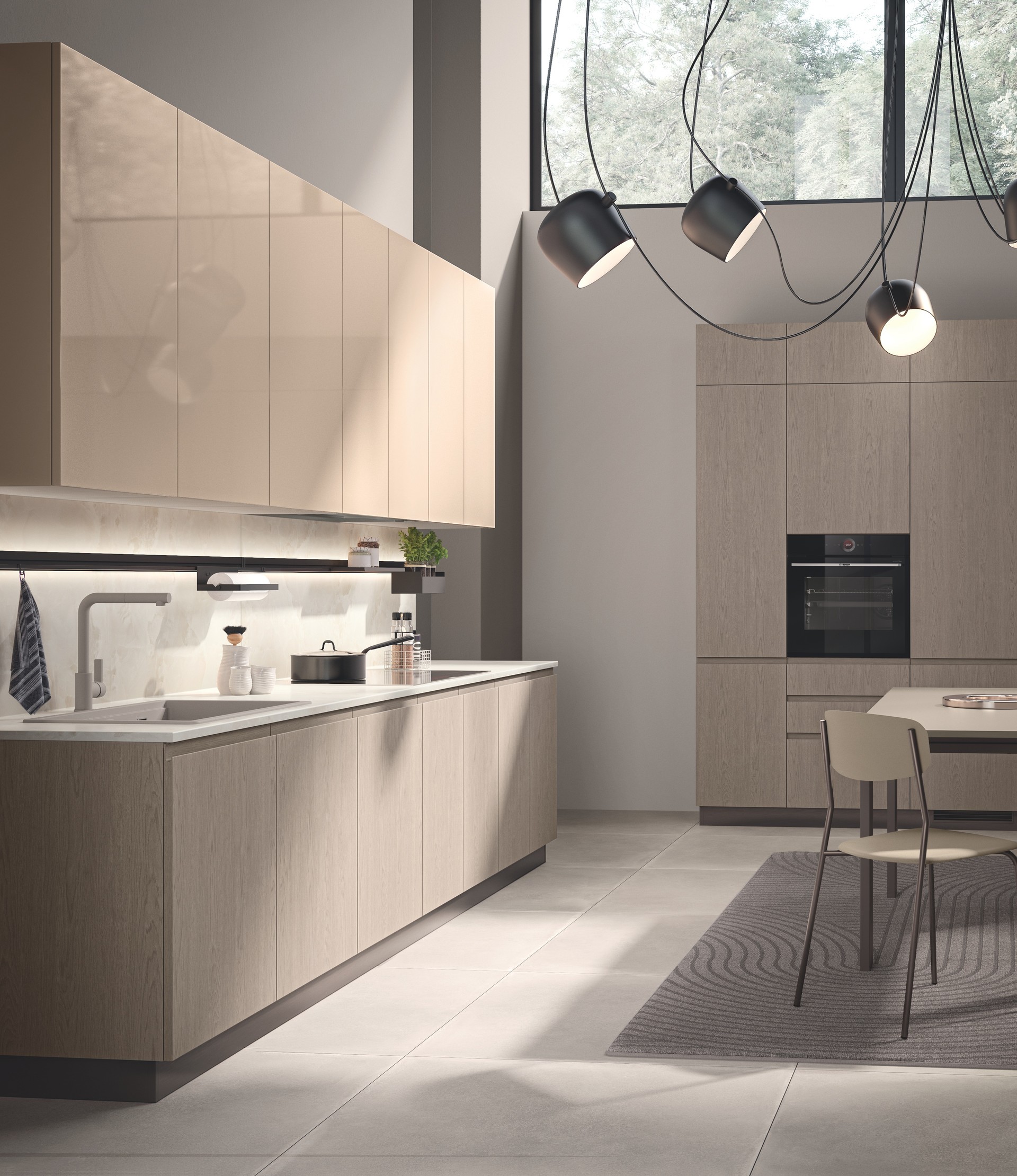 线性组合,配有Matera灰哑光烤漆门板。