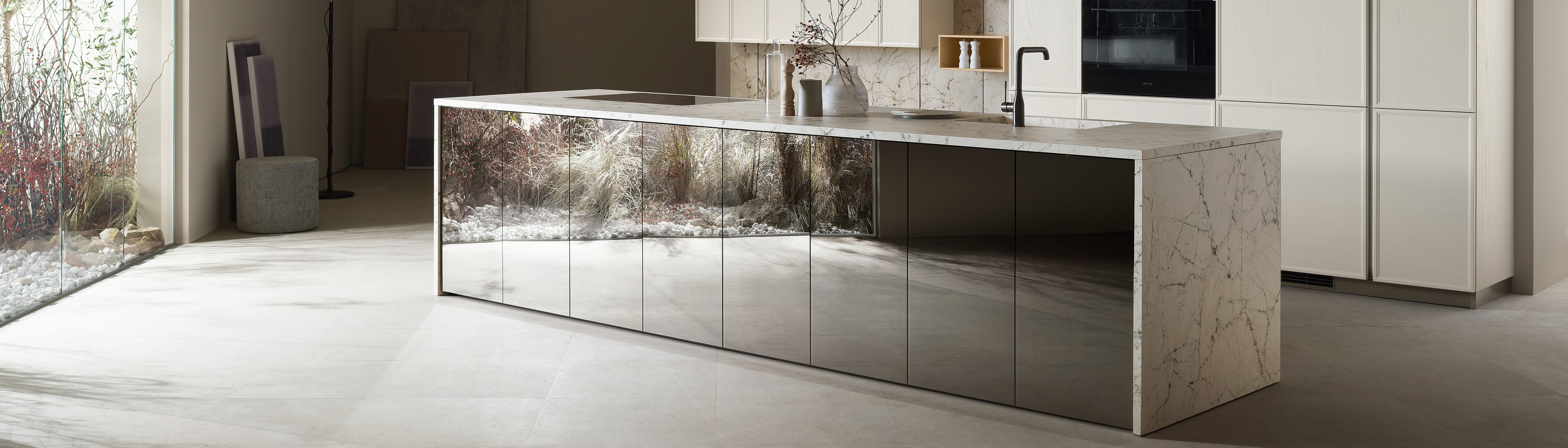 从透明到不透明,从光滑效果到独特的饰面,如“软工业风”或“烟熏色Stopsol反射玻璃和钢材,Scavolini提供了丰富的精致饰面选择,为你打造一款引人注目的优雅玻璃厨房。让我们的经销商协助你挑选。