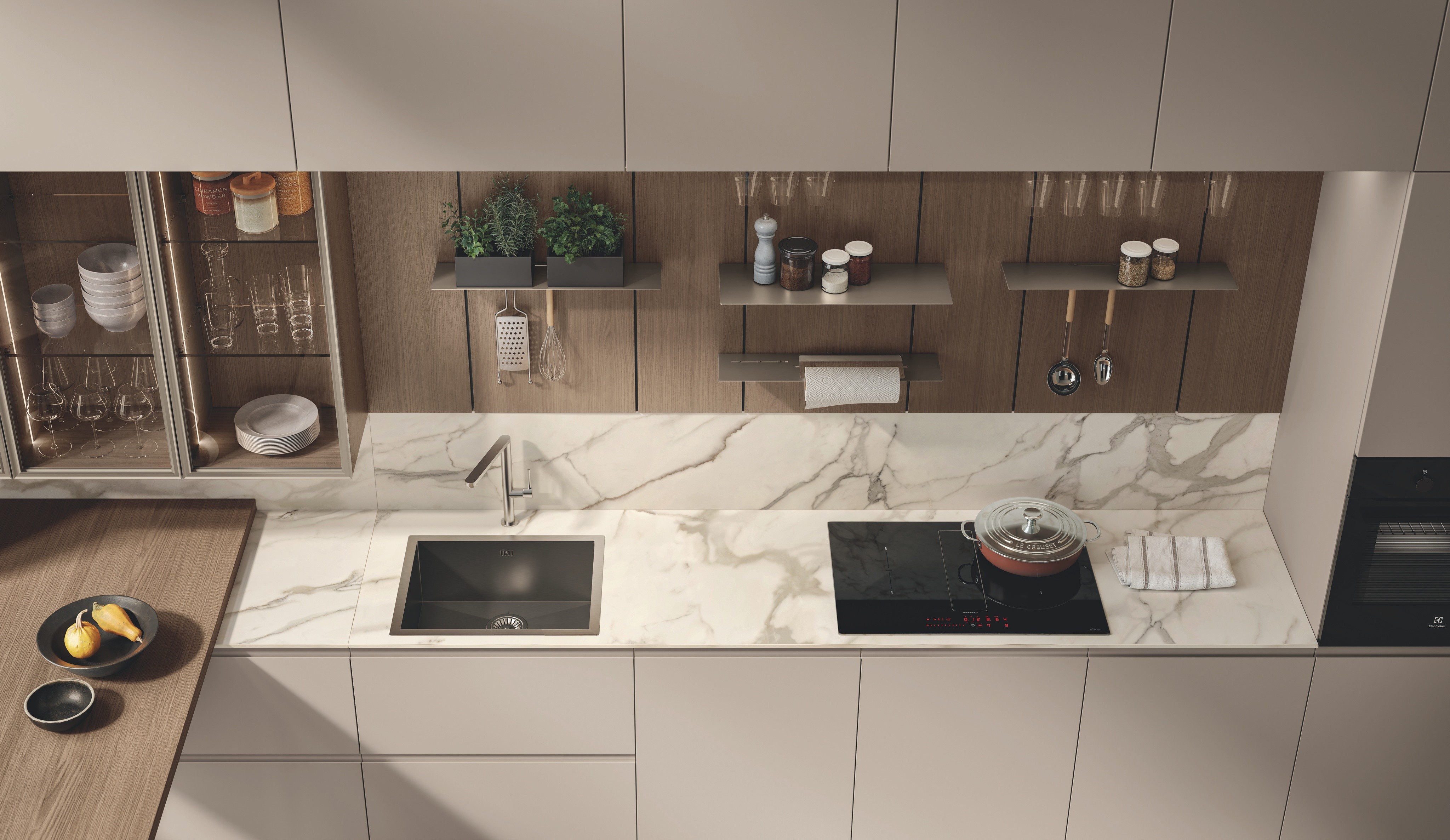 壁挂式抽油烟机或在家具里的隐藏式抽油烟机易于组装且节省空间,几乎适用于从线性到转角式厨房的任何组合,与现代风格典型追求的简约与和谐线条完美匹配。