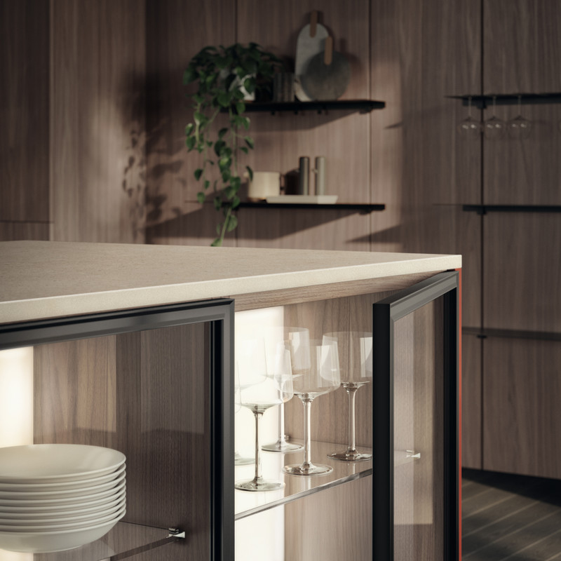 就像Scavolini的其他系列一样,Essenza系列也可以搭配Cross Elements配件系列的创新元素,无论在厨房或起居室空间都可使用。试问,还有什么比配有玻璃门板的厨房更优雅、更符合当代美感的呢?