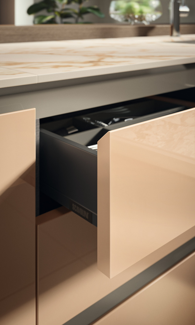 这个名字绝非偶然:Essenza厨房与起居室系列完美诠释了当代审美标准,融合了精致的材质、先进的技术和细腻的工艺。与极简风格不同,Essenza系列不仅仅局限于黑白配色,而是大胆运用多种色调和饰面,打造出多样的生活氛围,正如你多面的个性一样丰富多彩。你喜欢优雅风格,还是更偏爱复古元素?所有细节都在这里,满足你的要求!