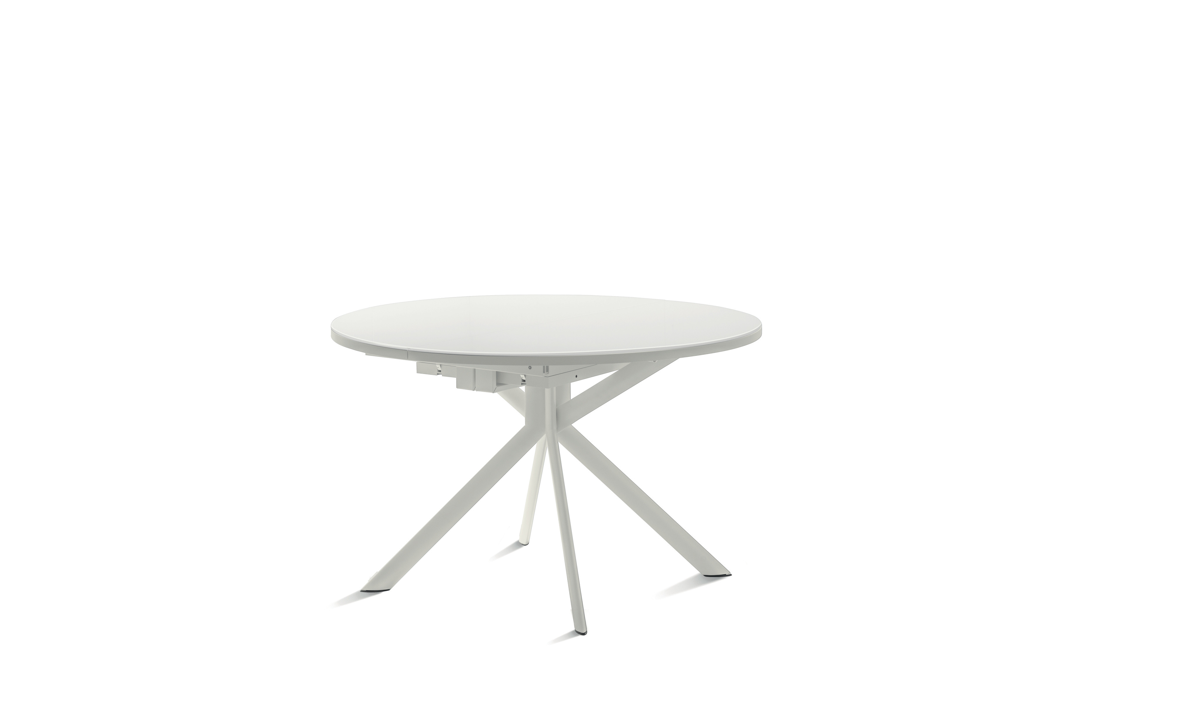 : 可延长,岩板或抛光钢化玻璃,胶合在刨花板上,所有侧边均为ABS封边;延长部分采用三聚氰胺饰面,与台面同色。