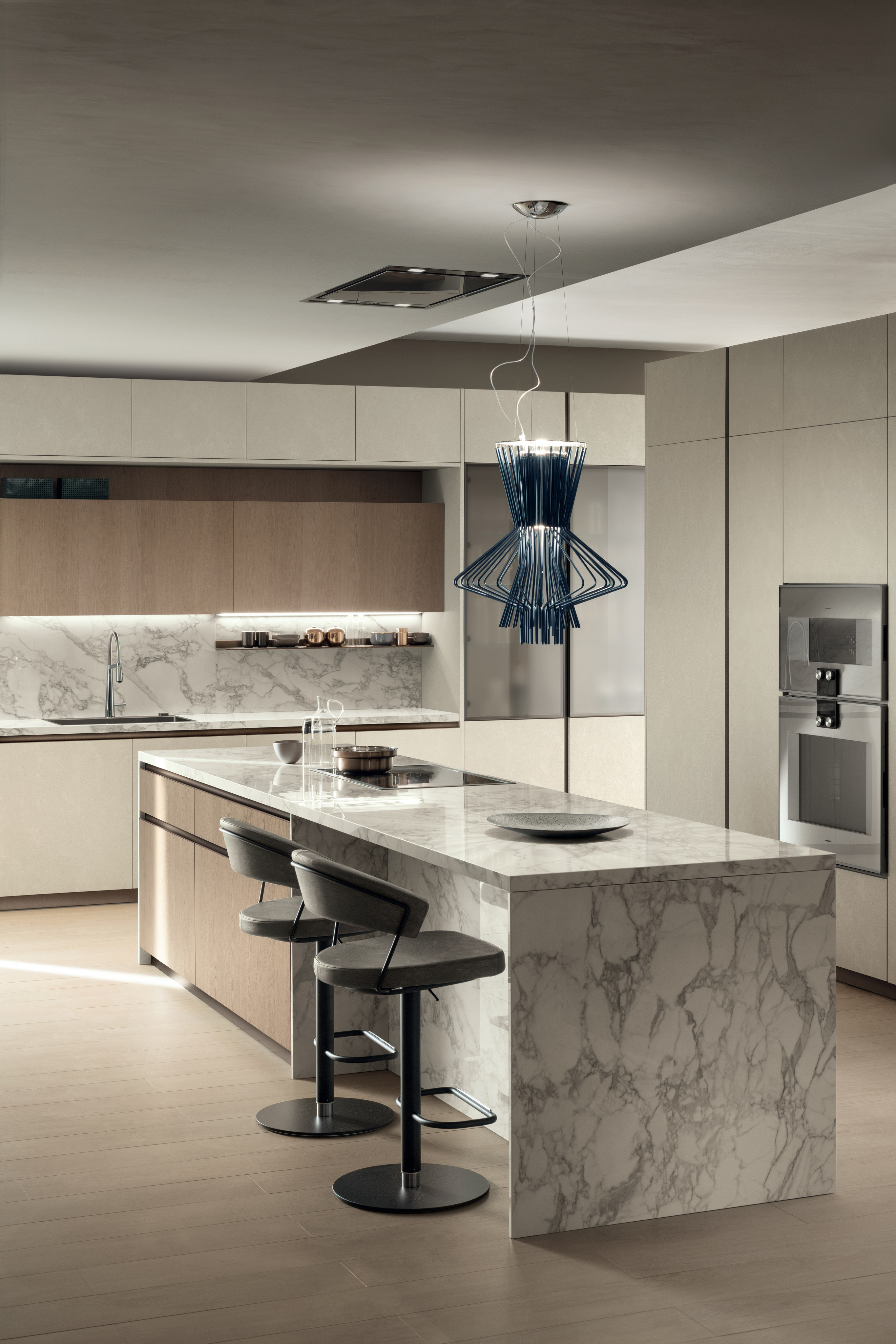 Mia by Carlo Cracco,作为一个专业的厨房系列,基础元素抽油烟机是必不可少的,在这个例子中,它除了基本的抽吸油烟功能,还提供重要的照明功能。两种科技共同满足厨房灶头烹饪的需要,真正的厨师体现于细节之中!带照明功能的抽油烟机是一个空间美学元素,增强家居建筑美感。
