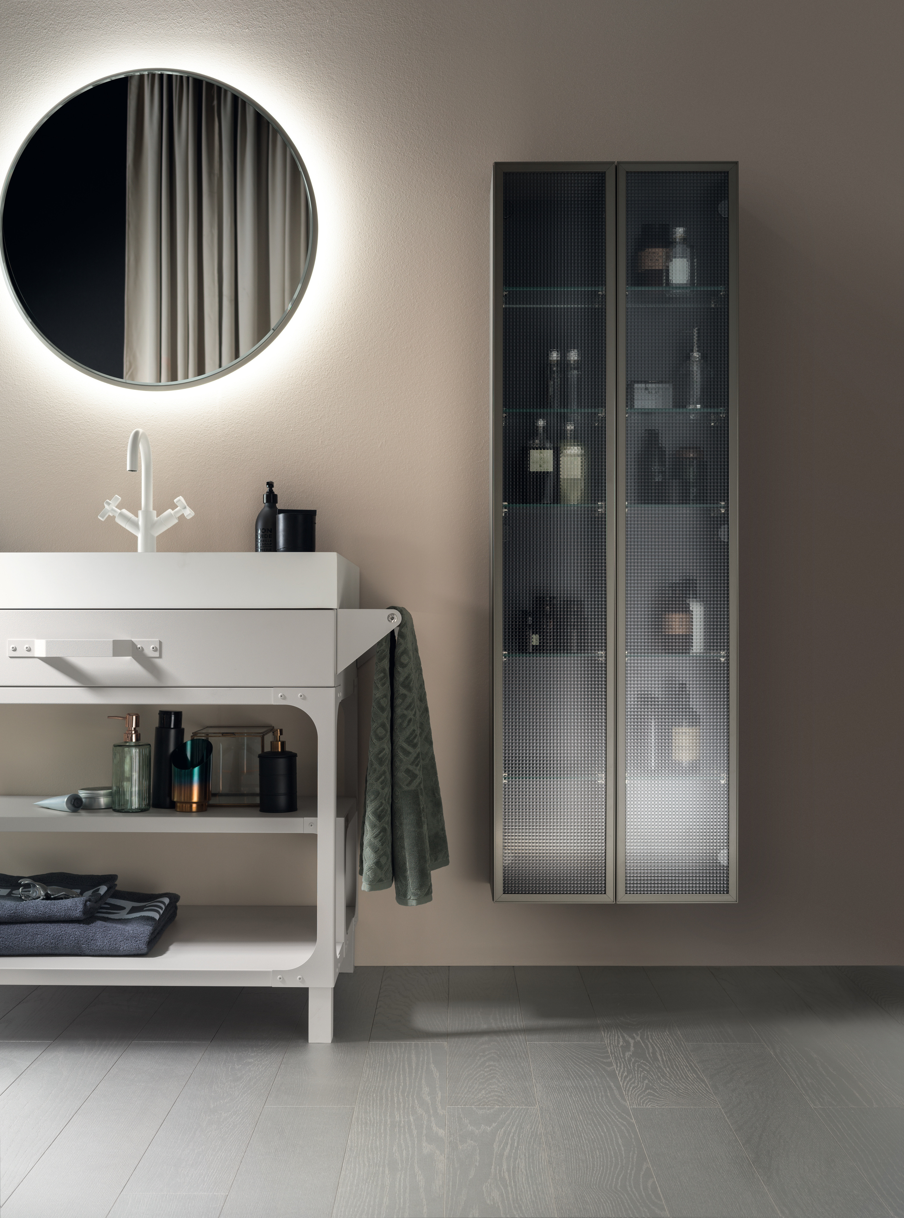 但是,让我们来看看浴室的主角:柜子。将手推车或碗柜的形状作为盥洗盆地柜您,觉得怎么样?Misfits系列的独立式元素是真正的设计瑰宝:带或不带玻璃门板的特殊金属柜体有不同的效果和颜色可供选择,非常惹人注目,同时确保您对收藏在柜子、抽屉内或摆放在层板上的个人物品有最大的自由决定权。