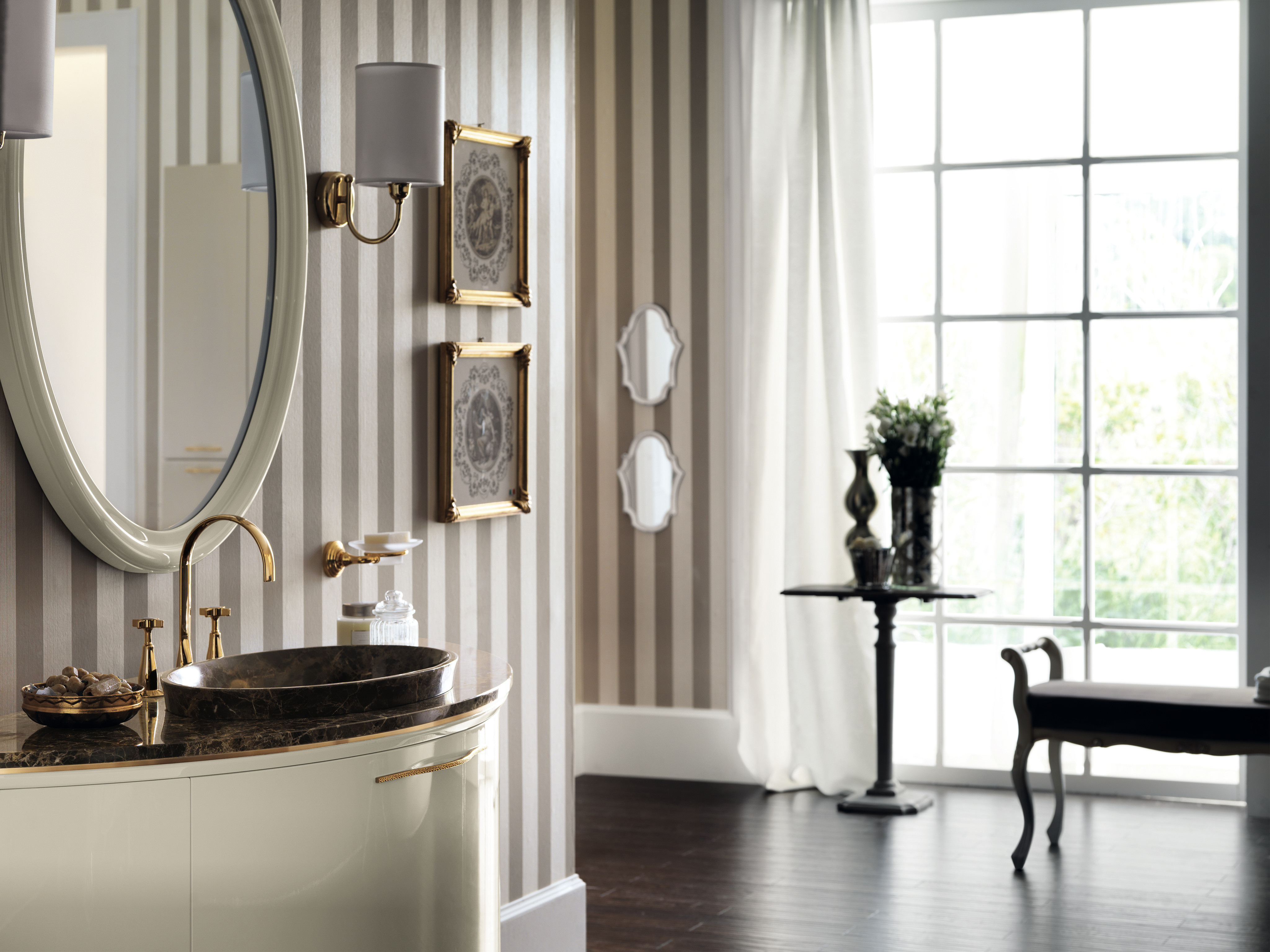 这些组件将您的浴室打造为一个独享尊贵的空间。“帝国”风的水龙头,由两个手柄组成的外观凸显其严谨优雅之美,不仅具有迷人魅力,同时又完全保留其人体工程学功能。