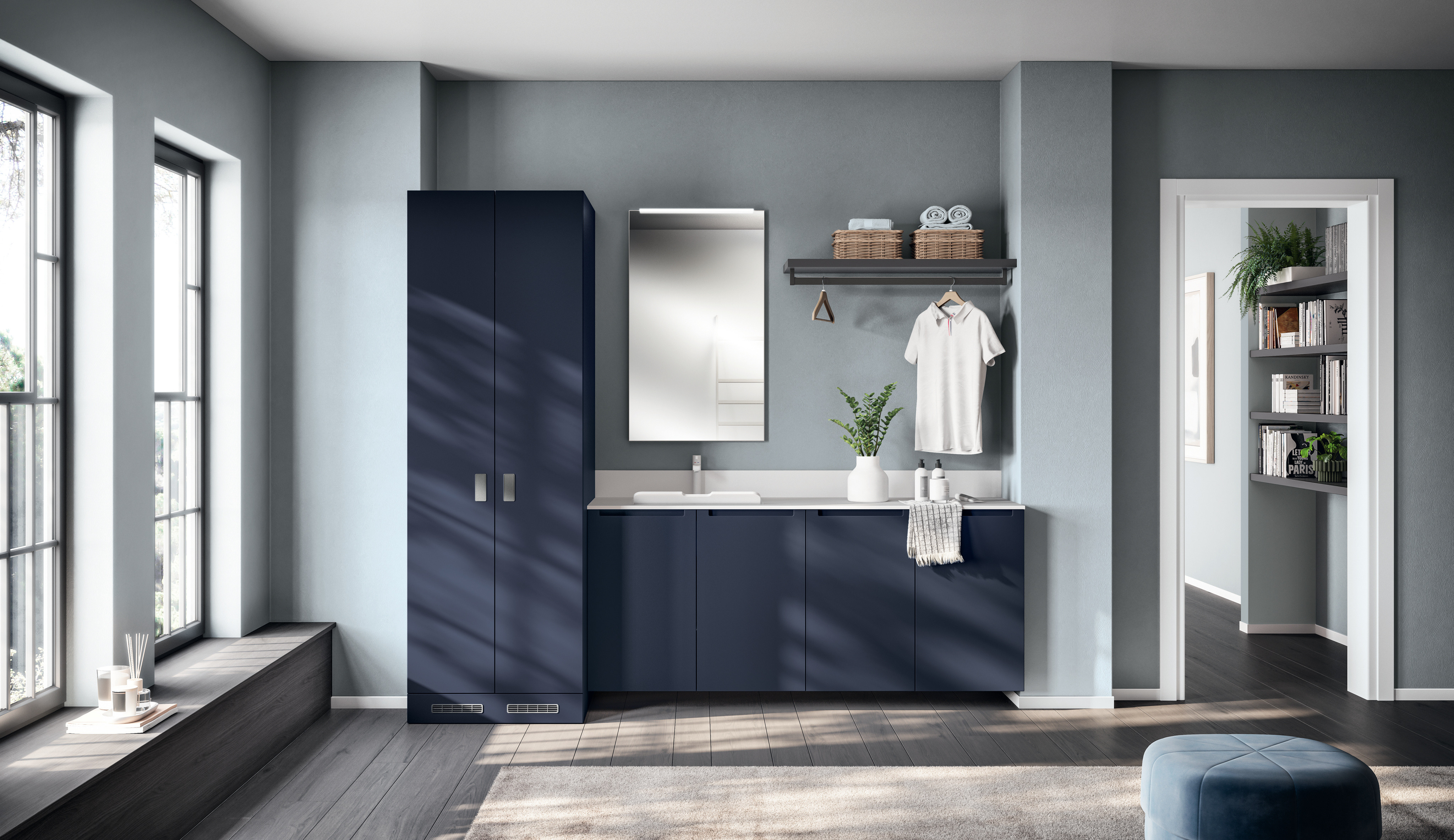 讨厌熨衣服? 想衣服不用熨烫,秘诀是洗衣后立即正确地晾起来,避免有褶痕。Laundry Space系列的Smart吊柜配备镜子,它的垂直开启带有实用的抽拉式晾衣架,专为晾乾小衣物而设:当晾乾后,将它们摺叠起来放于储物柜里或用抽拉式衣架挂起来以便随时拿取和穿着。