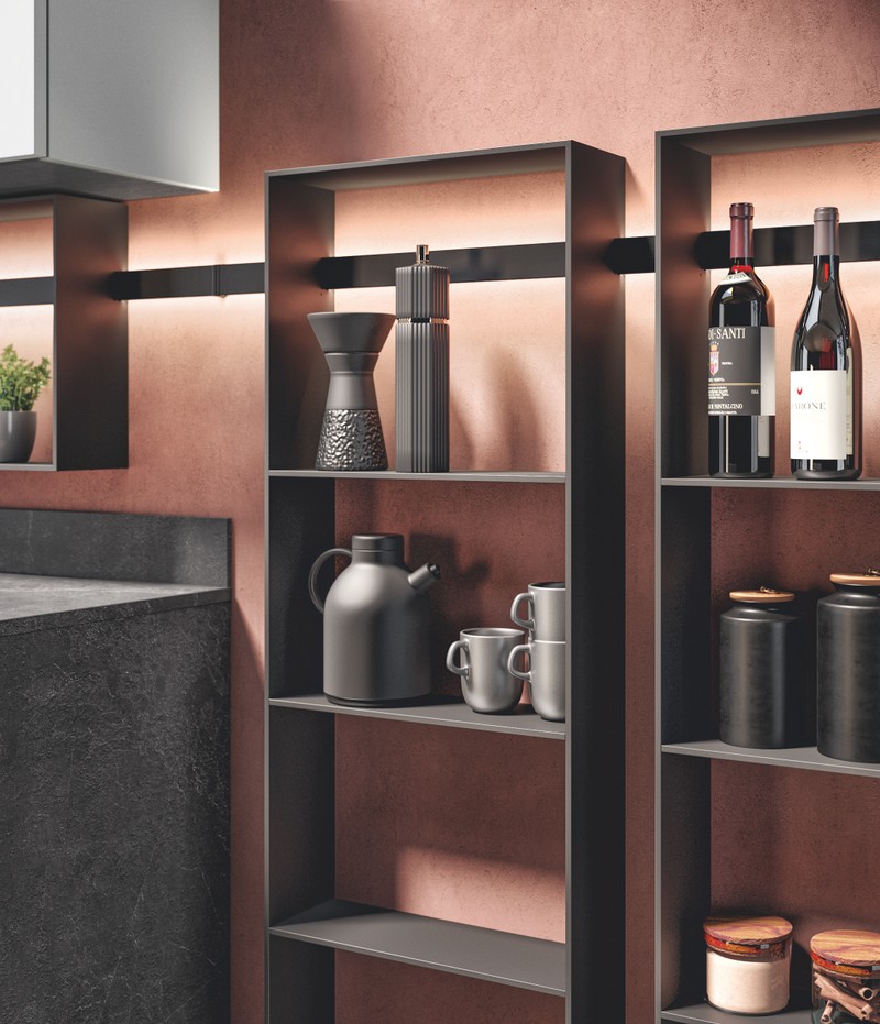 悬挂的酒杯是开胃酒的代名词,随时可以装满你最喜欢的饮料。要打造一个现代的酒吧角,请选择既实用又美观的玻璃杯挂架其设计满足最讲究的风格品味。详细来说,如果你喜欢线性和简洁的几何形状,我们建议你选择模块化开放式柜体:它们是布置厨房日常生活以及为特殊场合提供合适空间的绝佳伙伴。