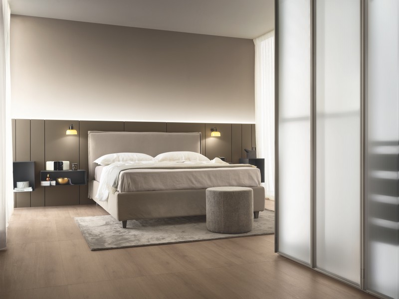 如果你想为睡房营造出现代又精致的格调,可以将一面蓝色背景墙或蓝色配件,与Goodnight床具系列中带软包床头板的Sarin睡床搭配。Scavolini推出的Sarin睡床提供多种饰面与颜色选择:从与蓝色完美融合的中性色调(如奶油色或灰色),到复古粉红或芥末黄,用来打造更具高级感的对比效果。
