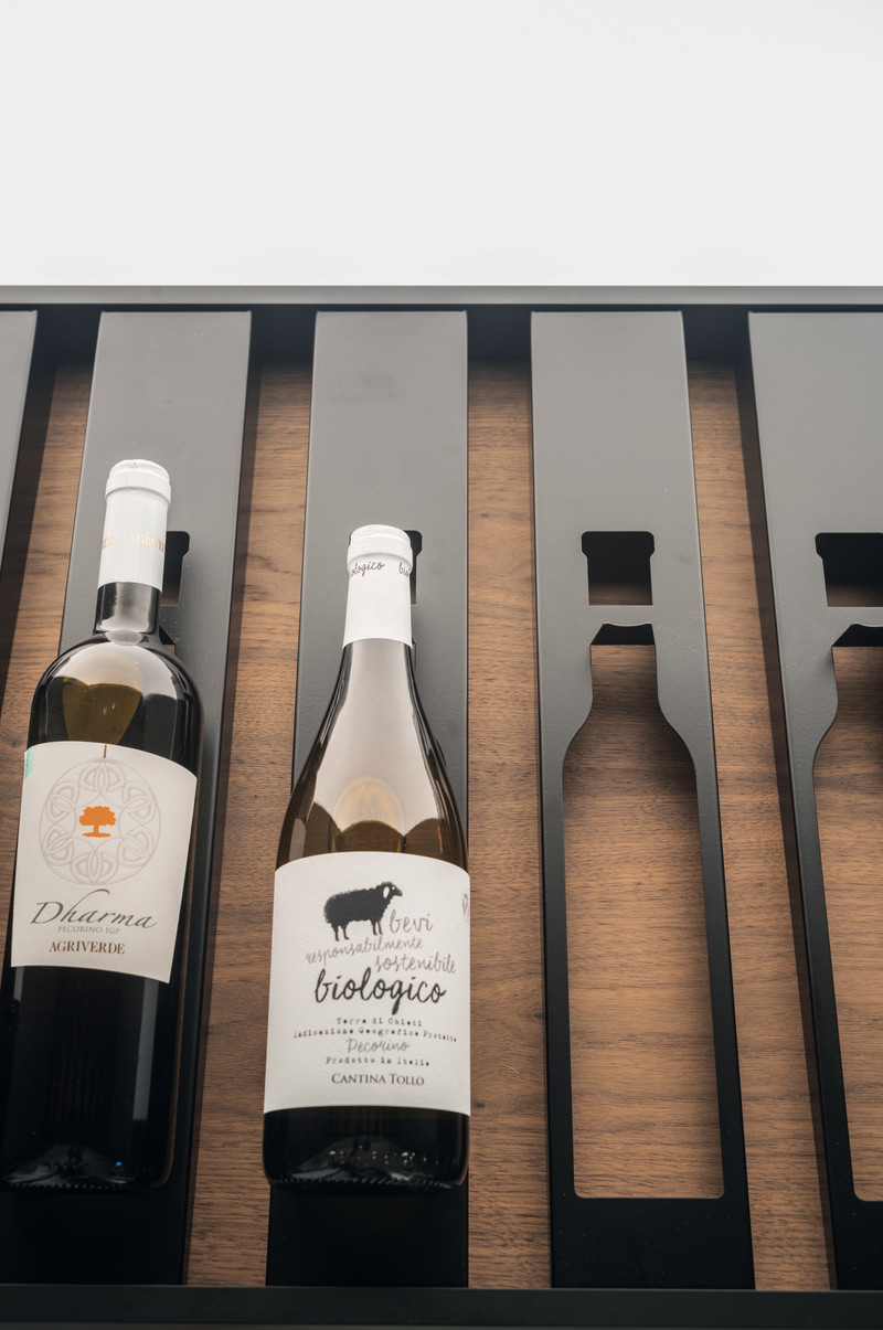想让每个人都看到你珍藏的香槟杯吗?在设计厨房墙板时,可以参考DeLinea系列中展示的这种模块化开放式结构:如果你钟爱一体式设计的家用酒吧概念,这种方案将完美融合美观与实用性。