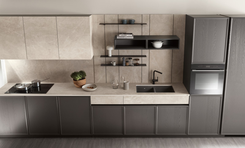 抽屉已经塞得满满的,找不到地方摆放你的整套香料吗?或者,你希望日常使用的厨具都随时触手可及?你可以充分利用厨房墙板来安装Vertical System系统:这款现代护墙板不仅能容纳用于摆放杯子或香草植物的层板,还能安装挂钩来悬挂汤勺或厨房抹巾。多种不同的饰面让它能够完美搭配你的Scavolini厨房,为空间带来视觉上的延续感。