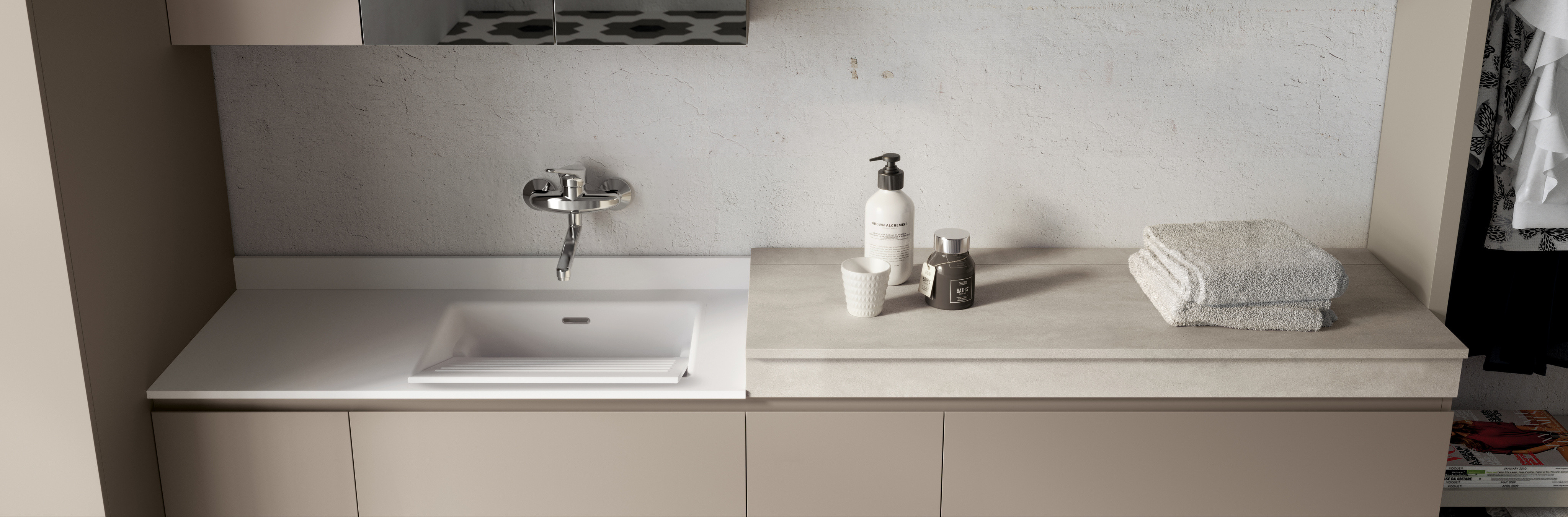 在简约的浴室中,家具有方正的线条、悬挂式元素,虚实交替,成为绝佳的存储元素;卫浴设备根据其功能而研究,通过创新的造型和技术解决方案来简化我们的生活。