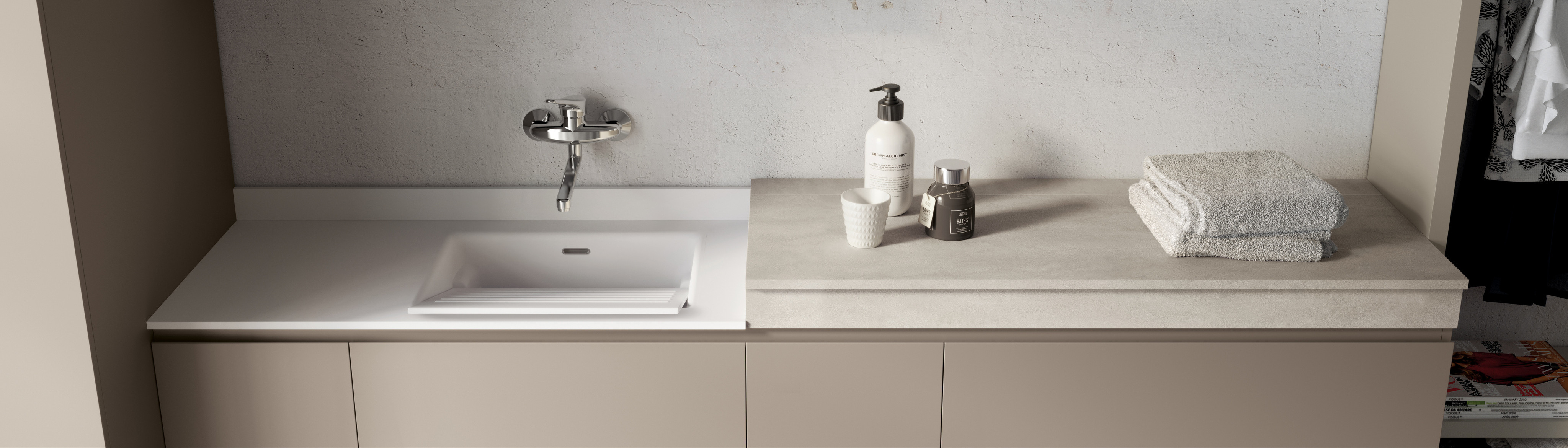在简约的浴室中,家具有方正的线条、悬挂式元素,虚实交替,成为绝佳的存储元素;卫浴设备根据其功能而研究,通过创新的造型和技术解决方案来简化我们的生活。
