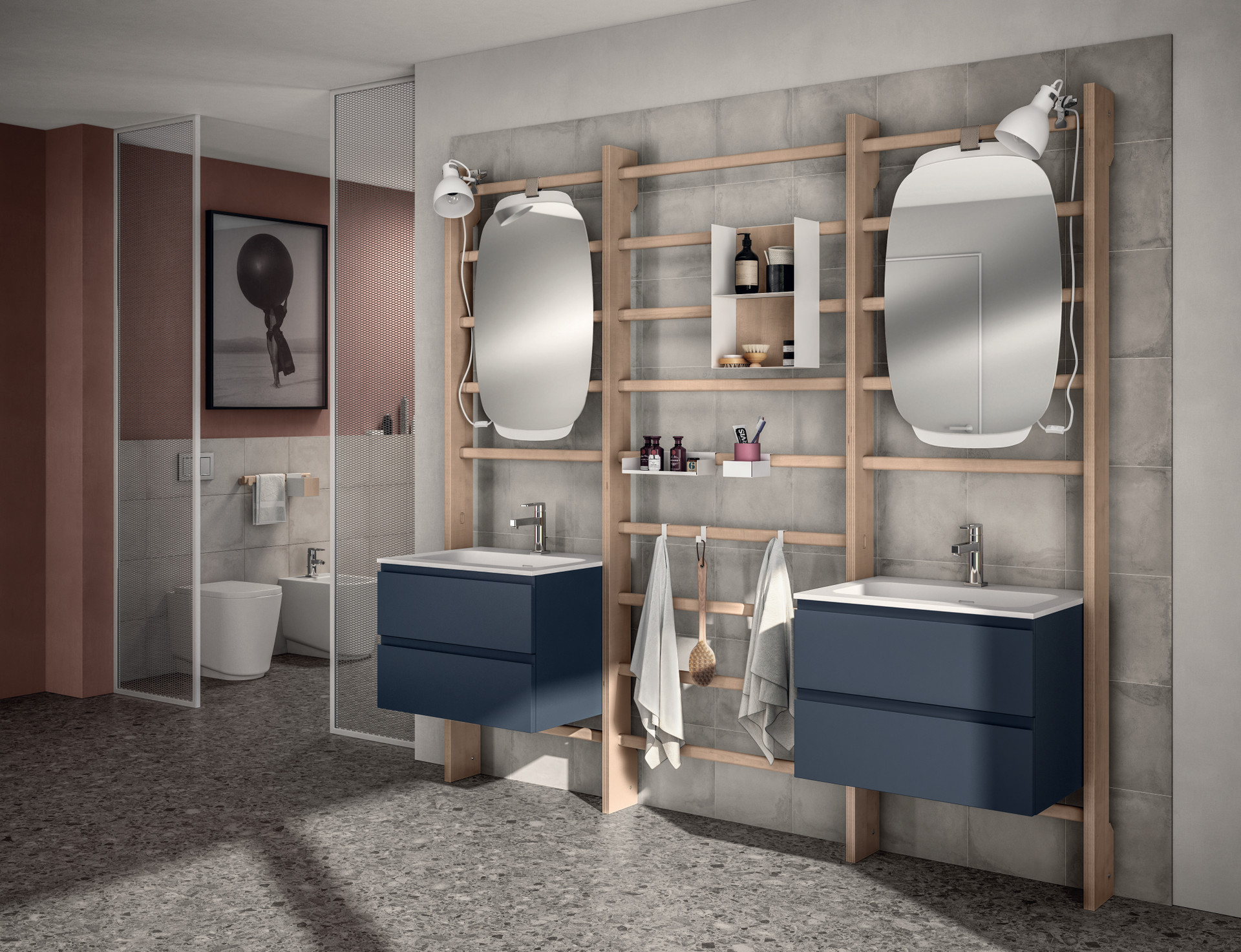该项目的核心在于对肋木架的前所未有的重新诠释。整个项目围绕着这个锻炼器材而开发,它被用作基础,可以在其上安装其它运动器材(例如Scavolini健身长凳和牵引杆)和固定各种浴室配件(例如灯、搁板、收纳元素和镜子)。这个解决方案适用于任何类型的空间,能够有效结合美观和功能,并保证无限的配置,为浴室环境的装饰提供最大的个性化自由。