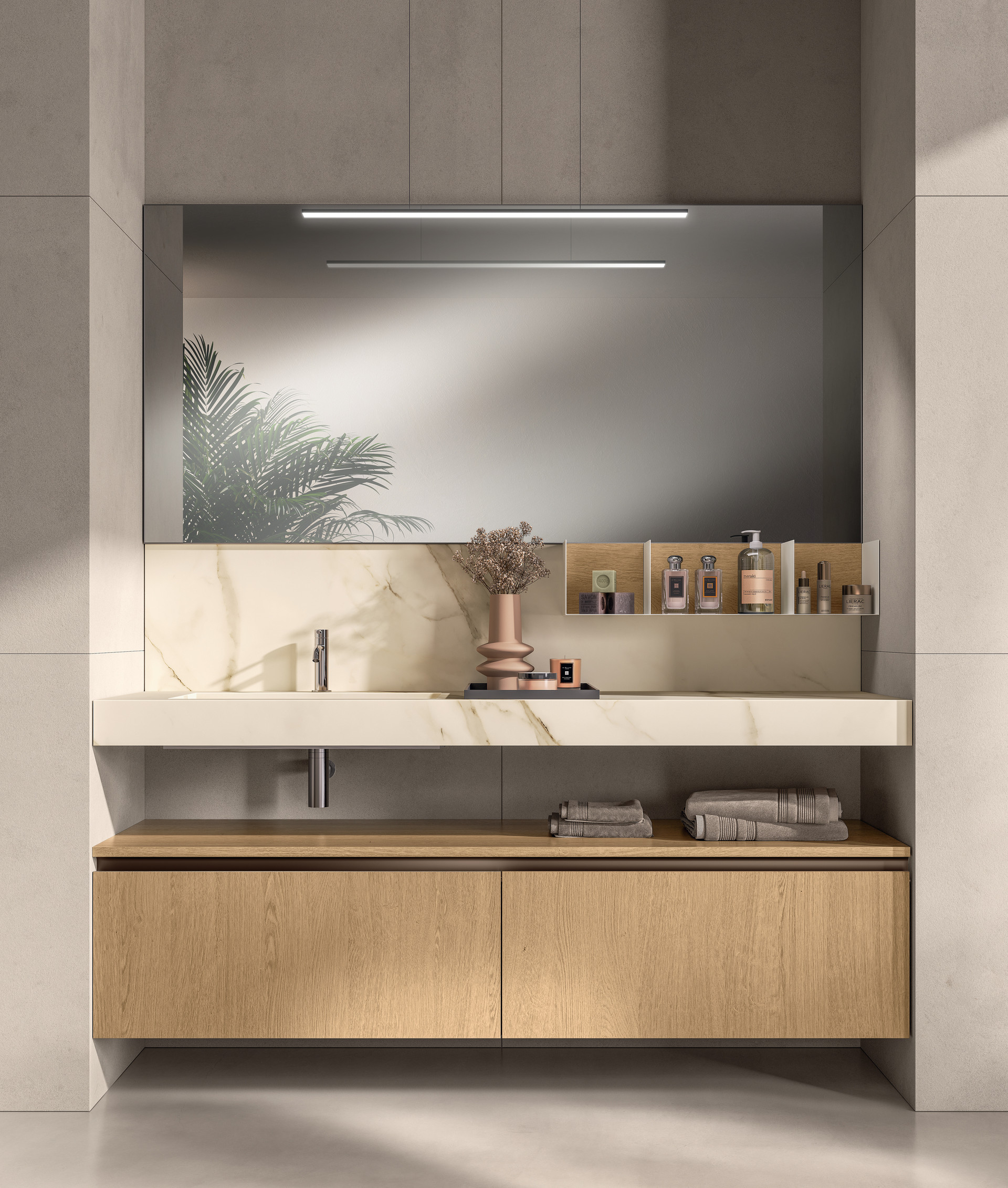 通过购买您的浴室,您可以访问 SCAVOLINI NO PROBLEM 浴室,该项目致力为所有购买了 Scavolini 浴室家具者专设,并希望分享愿望并提出建议,以更好的方式享受他们家中的这个重要环境。